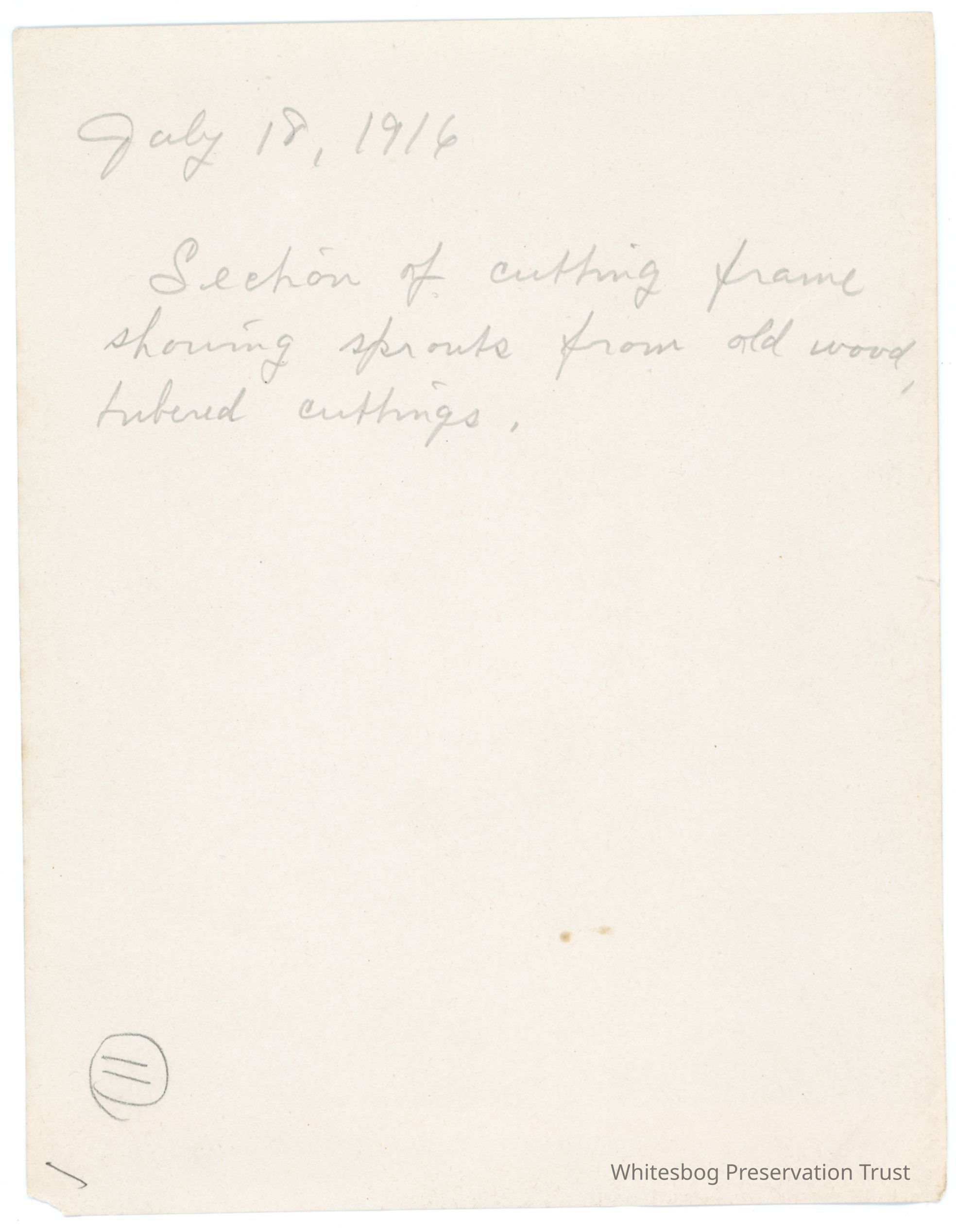 7/18/1916 "Section of cutting frame showing sprouts from old wood, tubered cuttings ."
